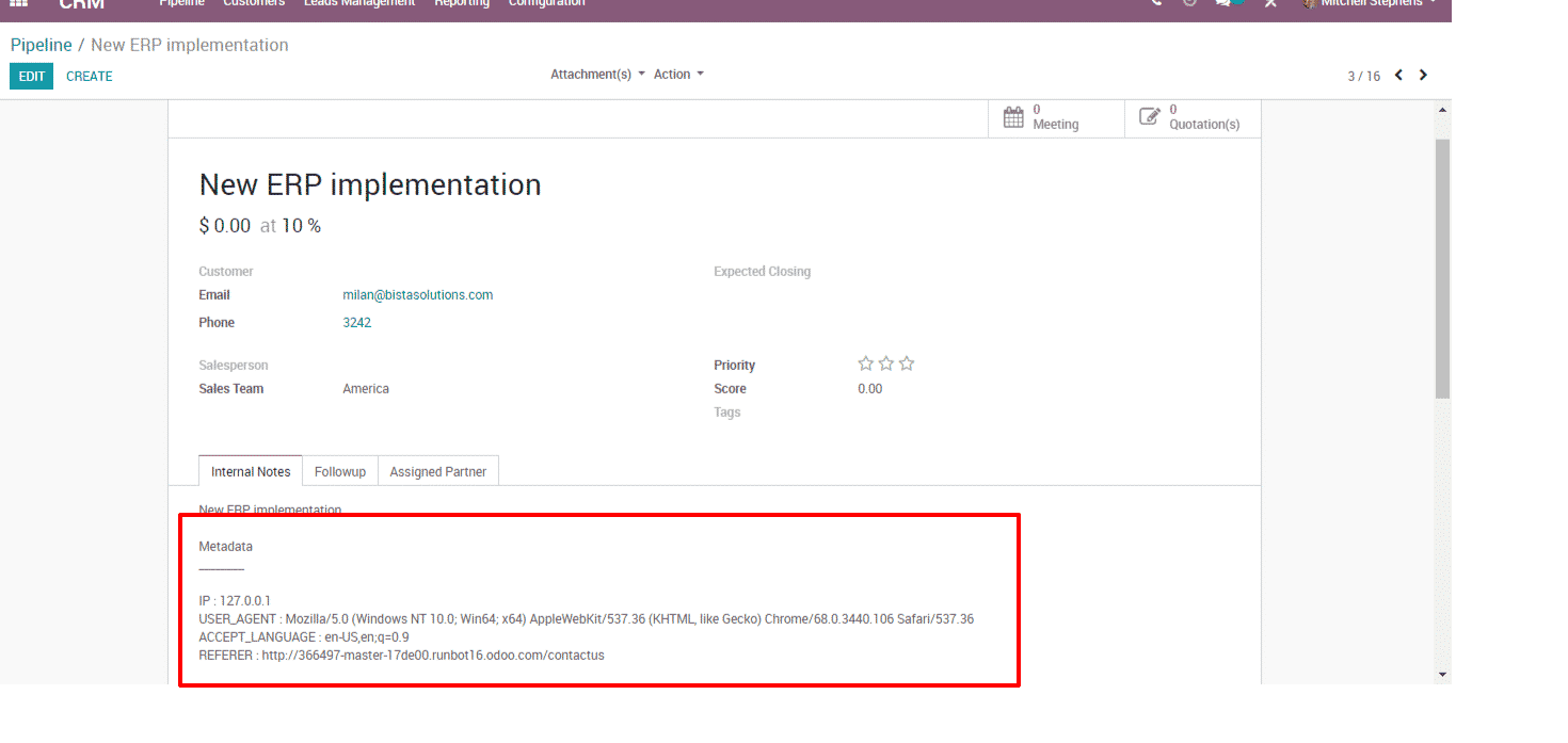 2.3 – User metadata capturing, such as IP address and user device, while generating a lead from the website through the Contact Us page.