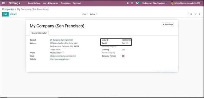 - Select company/User name and add legal Id and Tax Id as this information is mandatory