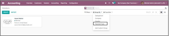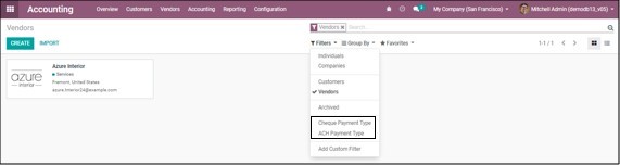 - In the Vendors list view, you can also group by and filter vendors using Payment types