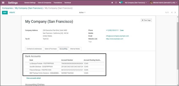 - Add the bank Accounts details in the Accounting Page for that Vendor. Also add the routing number for that bank account. Bank account numbers should not have any characters, spaces or special charecterisstics.