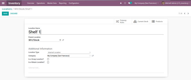 - Location: Location is the specific place within the warehouse. It can be a sublocation of your warehouse as a shelf, a floor, etc. Therefore, a location is part of one warehouse, and it can not be linked to multiple warehouses. One can create multiple locations and sublocations such as shelves, racks, etc.