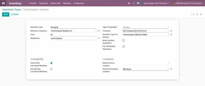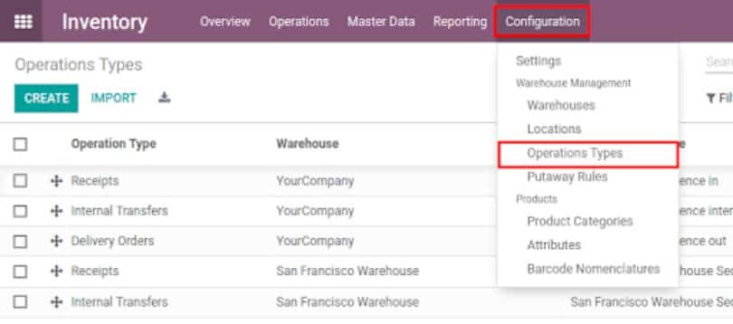 - Operation Types: Operation types are the types of operation that are used in terms of transferring goods from one location to another.