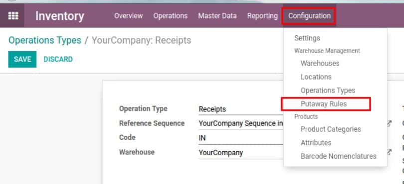 - Putaway Rules: Putaway is the process of taking products off the receiving shipments and directly putting them into the most appropriate location.
