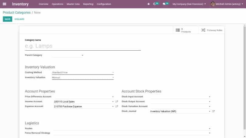 Product Type: In case you set the product type as ‘Storable,’ then you can track the stock of the product and know how many units are in stock and the forecasted number of units. If you want to include a product on receipts/deliveries but don’t need to track its stock, then you can select the type ‘Consumable. ’ This will help you to set up Products in Odoo inventory management,