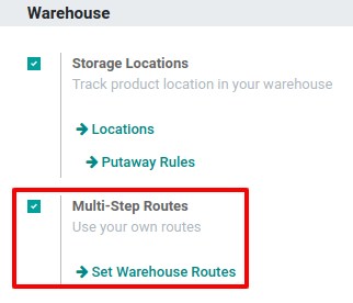 - Configuration: Enabling the Multi-Step Routes will enable the storage location automatically.