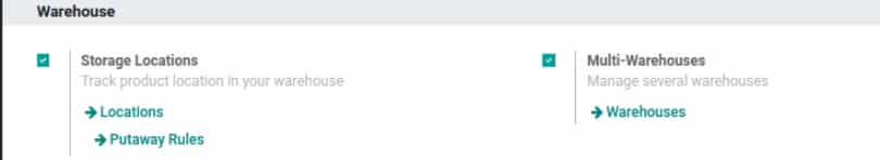 If you want to create a new warehouse, you should enable the Multi-Warehouse settings. Note that the Multi-Location settings will be automatically enabled at the same time, and click on the save button. Which will help you to save multiple warehouses inside the Odoo inventory module.