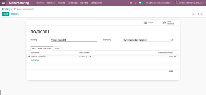 Fill in all the details, add the work centers for this route, and click on the “Save” button.