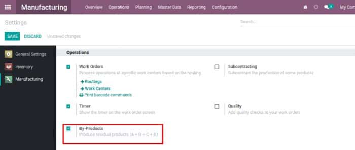 If there are By-products in your manufacturing order then you need to enable it in Manufacturing Settings.