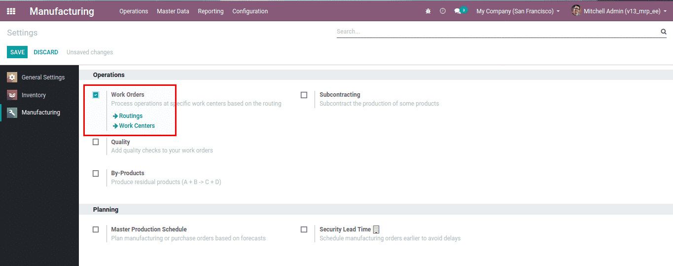 Routes are the paths through which the production of each product goes. Production is not a simple process, it contains a lot of work centers, routes, and so on. Here we can set the routes for manufacturing.