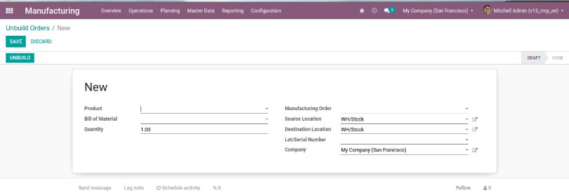 Unbuilding is yet another innovative feature in the Odoo 17 manufacturing app. Here we can unbuild a manufactured product in case of damage caused to any of its parts. This way we won’t be scrapping the entire product and we can unbuild the product to utilize all the good components of it.