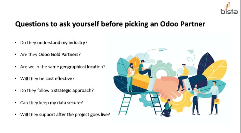 - Support and training: Your ideal Odoo partner should be one who handholds you throughout the journey, even after going live. They should support you with version upgrades, support, and migration services.