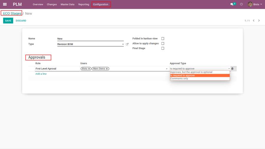 Effective: This stage is used for confirmed ECOs. Here one can apply changes and this stage will be marked as the final stage in the stage settings, also select allow to apply changes for applying ECO changes in odoo plm app