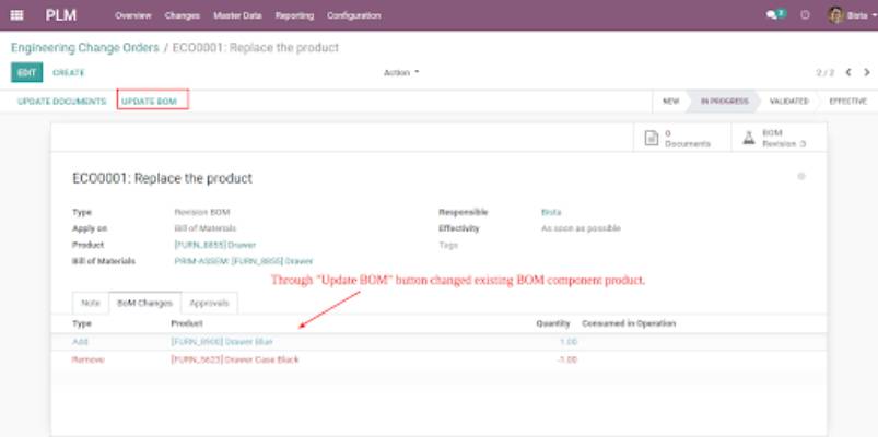 You can even update your BOM using the Update BOM button. Once saved, it will reflect on the ECO form.