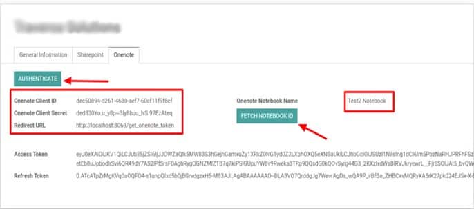 - There is a tab after SharePoint named OneNote where we need to configure the credentials.