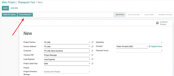 - Once you select the XXXX PM, Lead engineer, and all the other fields value, after saving it, you need to plan the project by clicking on the PLAN PROJECT button.