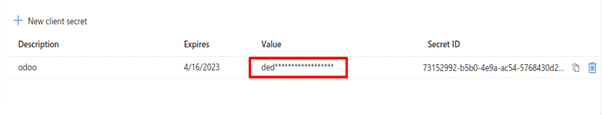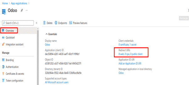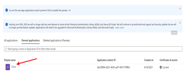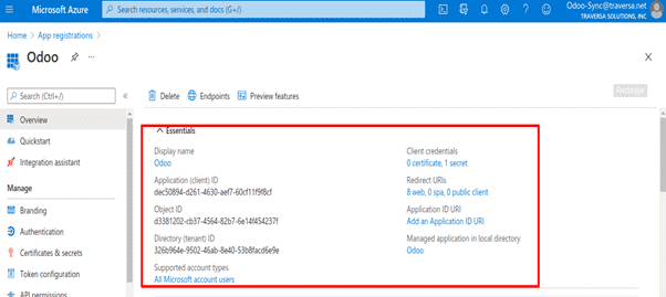 Click on the Odoo app and you will see the Application(client) ID is displayed as shown in Figure 1.2