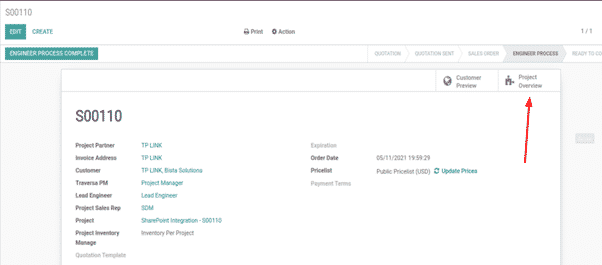 - You can see as our customer was TP-LINK, hence the pages have been created inside it with Project Title combined with the Sale order number.