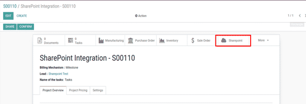 - To create the project in SharePoint via odoo, you need to configure the SharePoint in odoo via Odoo Sharepoint integration.