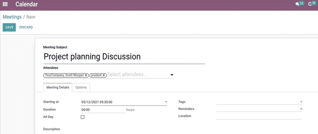 - Here we have created an event called Project Planning Discussion on 12th of May 2021.