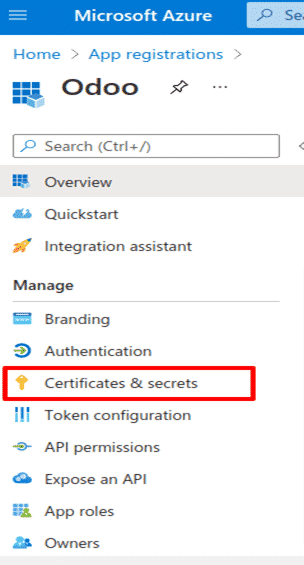 Now to get the Sharepoint client secret key, you can click on the Certificates and secrets in the left column of the portal as shown in Figure 1.3