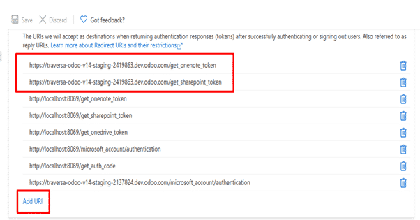 You need to add the redirect URL for Calendar sync in azure portal as we did for SharePoint Portal. Figure 3.5.1 displays the url process.